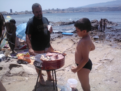 Y como no podía ser de otra forma, por nuestras raíces, y por estar en El Confital, y en una semana en que tanto en El Confital, como en el sur de Gran Canaria, los especuladores han reprimido e intentado intimidar a las familias canarias que siguen practicando los usos culturales canarios de costa, de forma visible, disfrutamos del día haciendo un asadero, celebrando con lucha la pervivencia de las practicas culturales que impiden la urbanización de la costa que nos queda natural.