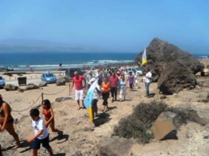 Un poco retrasados por la actuación represora de los agentes de policía, realizamos el acto central del ritual del Gánigo, con el reconocimiento a Chaxiraxi, la Madre Tierra – la Hija del Sol (la Candelaria canaria del 15 de agosto), y el compromiso de trabajar para reconstruir el Gánigo y recuperar la libertad de organizar Canarias desde la cultura, el territorio y los intereses del pueblo canario.