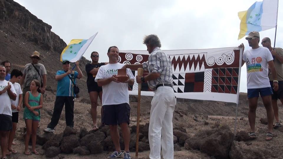 Este año, además de compartir el compromiso del Gánigo entre todos los presentes, hubo un recuerdo especial a los compañeros que nos dejaron en el último año, Güenapay – Faustino, Celestino, Morongo y con ellos a todos los militantes por la Nación Canaria que ya no están entre los vivos, y con los que compartimos el Gánigo a través de los símbolos magos del viaje – baile de la luz solar que se ven en la imagen.