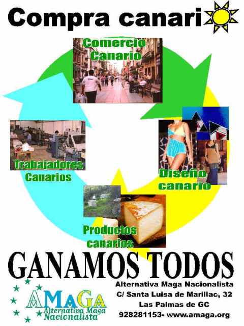 Cartel y texto de la campaña desarrollada por AMAGA para promover el tejido económico canario.