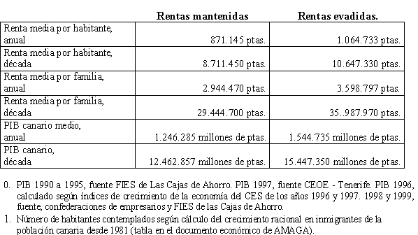 1.984.000 ptas., y el de los inmigrantes en Canarias en 2.583.000 ptas.